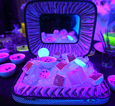 Many of the amuses-bouches are actually glow-in-the-dark, as is the vodka, by way of a combination of special proteins that are completely indigestible, and act like super-roughage.